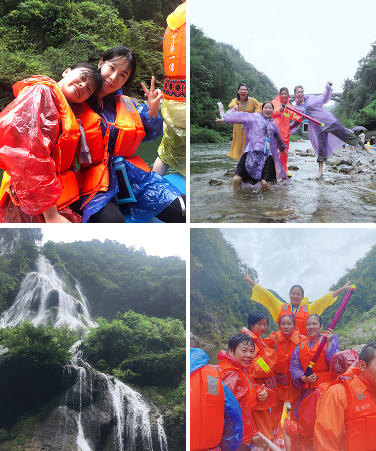 “張家界看山,猛洞河玩水?!痹诿投春樱G之韻家人們乘坐著小筏,從“哈妮宮”出發(fā),順?biāo)?,一葉扁舟,在原始次生林的高山峽谷之中,身著救身衣、乘皮舟、闖險(xiǎn)灘、博激流、沿途觀美景、沐瀑流、打水仗、過峽關(guān),出沒浪端谷底,途經(jīng)三角巖、雞籠門、捏土瀑布、閻王灘、落水坑瀑布、夢(mèng)思峽等數(shù)十個(gè)景點(diǎn),兩岸秀麗的風(fēng)光無不令人叫絕觀止。家人們?cè)谄魍局蟹鸥栝L(zhǎng)嘯,或搏浪闖灘,或戲水嬉鬧,找回快樂童真的自我。