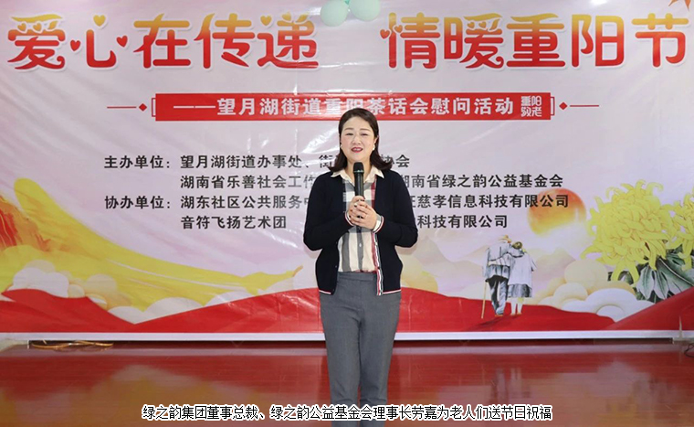 歲歲重陽,今又重陽。為進(jìn)一步弘揚(yáng)敬老孝親的文明德尚之風(fēng),2020年10月24日,綠之韻集團(tuán)董事總裁、綠之韻公益基金會理事長勞嘉,綠之韻集團(tuán)黨委書記、綠之韻公益基金會副理事長劉云帶領(lǐng)愛心志愿者參加在長沙舉行的重陽節(jié)主題茶話會慰問活動。會上,勞嘉理事長代表綠之韻公益基金會捐資10萬元用于關(guān)愛老人公益項(xiàng)目,為獨(dú)居老人、重疾高齡老人、計生特殊家庭和貧困家庭送去一份節(jié)日的溫暖。