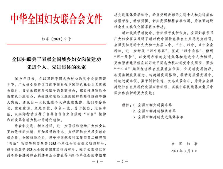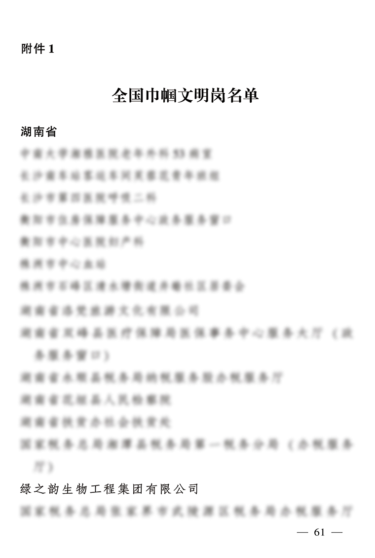 喜訊!綠之韻集團(tuán)被全國(guó)婦聯(lián)授予“全國(guó)巾幗文明崗”稱號(hào)