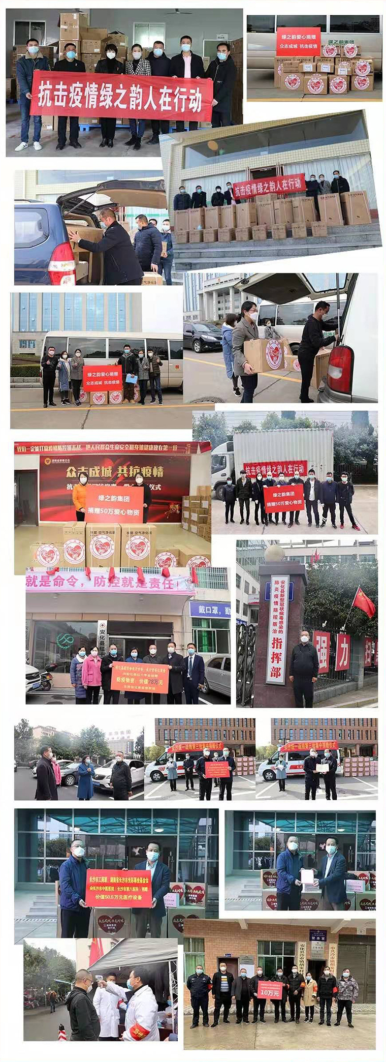 2020年新冠疫情期間,在綠之韻集團(tuán)董事總裁、綠之韻公益基金會(huì)理事長(zhǎng)勞嘉,綠之韻黨委書(shū)記劉云等巾幗女性帶領(lǐng)下,成立黨員及愛(ài)心志愿者專門隊(duì)伍,一方面通過(guò)國(guó)內(nèi)外各種渠道、積極盡辦法籌措口罩、防護(hù)服、護(hù)目鏡等緊缺物資,多批次捐贈(zèng)近200萬(wàn)元愛(ài)心款物,竭力援助湖北湖南抗擊疫情;另一方面集團(tuán)公司黨委、工會(huì)、公益基金會(huì)、全國(guó)分公司、各下屬機(jī)構(gòu)上下聯(lián)動(dòng),積極向員工及市場(chǎng)伙伴普及防控知識(shí),把員工、事業(yè)伙伴、消費(fèi)者的生命健康放在第一位,以責(zé)任和大愛(ài),與全國(guó)人民一起堅(jiān)決打贏這場(chǎng)疫情防控戰(zhàn)。