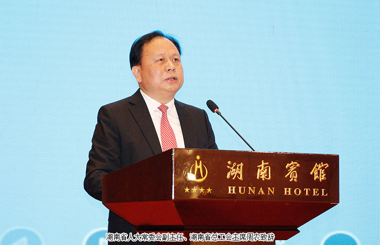 大會由中共湖南省委副書記、省長毛偉明主持。會議伊始,湖南省人大常委會副主任、黨組成員,湖南省總工會主席周農(nóng)致辭。他表示,在湖南省委省政府的堅強領(lǐng)導(dǎo)下,全省工人階級和廣大勞動群眾堅定地沿著習(xí)近平總書記指引的方向,在實施三高四新戰(zhàn)略建設(shè)現(xiàn)代化新湖南的主戰(zhàn)場上揮灑汗水,在抗擊新冠肺炎疫情、落實長效防控的一線經(jīng)受考驗,在守護一湖四水、推進生態(tài)文明建設(shè)中拼搏奉獻,在決勝全面小康打贏脫貧攻堅的決戰(zhàn)中勇挑重?fù)?dān),在重點工程、重大項目中大顯身手,在各行各業(yè)的本職崗位上施展才華、建功立業(yè),為全省經(jīng)濟社會高質(zhì)量發(fā)展做出了積極的貢獻。展望未來,十四五藍(lán)圖已經(jīng)繪就,新的征程已經(jīng)開始,讓我們深入學(xué)習(xí)貫徹習(xí)近平新時代中國特色社會主義思想,從黨的百年歷史中汲取砥礪奮進的精神力量,把個人夢想融入中華民族的復(fù)興夢,堅定不移聽黨話,矢志不渝跟黨走。大力弘揚勞模精神、勞動精神、工匠精神,以主人公的姿態(tài)積極投身三高四新的火熱事業(yè),發(fā)揮工人階級主力軍的作用,為奮力譜寫新時代堅持和發(fā)展中國特色社會主義的湖南新篇章中作出工農(nóng)階級的新的偉大貢獻。