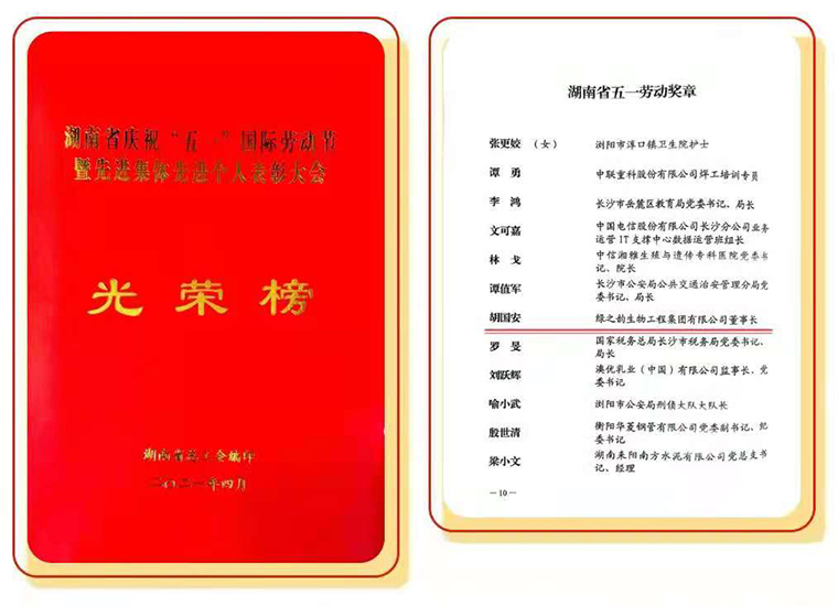 此次榮獲“湖南省五一勞動獎?wù)隆?,胡國安董事長表示,榮譽在身,責(zé)任在肩。2021年是“十四五”開局之年,是中國共產(chǎn)黨建黨100周年,也是綠之韻集團“第四個五年規(guī)劃”落地推進的第三年。綠之韻作為一家立足湖南本土的民營企業(yè),將勇?lián)鷼v史使命,積極投身新湖南建設(shè),自覺把企業(yè)發(fā)展同國家、民族命運連接起來,把企業(yè)實際和湖南發(fā)展優(yōu)勢結(jié)合起來,積極響應(yīng)政府號召,大力發(fā)揚“勞動最光榮、勞動最崇高、勞動最偉大、勞動最美麗”的社會風(fēng)尚。同時,加強企業(yè)創(chuàng)新型、應(yīng)用型、技能型人才培養(yǎng)力度,加大科研創(chuàng)新力量集聚,堅持“以產(chǎn)品為導(dǎo)向”的發(fā)展理念,不斷深化自研和產(chǎn)學(xué)研,積極培養(yǎng)人才隊伍充實企業(yè)創(chuàng)新發(fā)展后勁,為企業(yè)高質(zhì)量發(fā)展提供有力的人才支撐。今后,將繼續(xù)在各級領(lǐng)導(dǎo)的指導(dǎo)和支持下,帶領(lǐng)企業(yè)繼續(xù)服務(wù)三農(nóng)產(chǎn)業(yè),助力鄉(xiāng)村振興;堅持創(chuàng)新創(chuàng)造,引領(lǐng)企業(yè)高質(zhì)量發(fā)展;積極履行企業(yè)公民責(zé)任,投身公益慈善事業(yè);積極融入湖南“三高四新”戰(zhàn)略的恢弘征程,為鞏固拓展脫貧攻堅成果、助推鄉(xiāng)村振興、加快建設(shè)富饒美麗幸福新湖南做出新的更大貢獻,以優(yōu)異成績向建黨100周年獻禮。