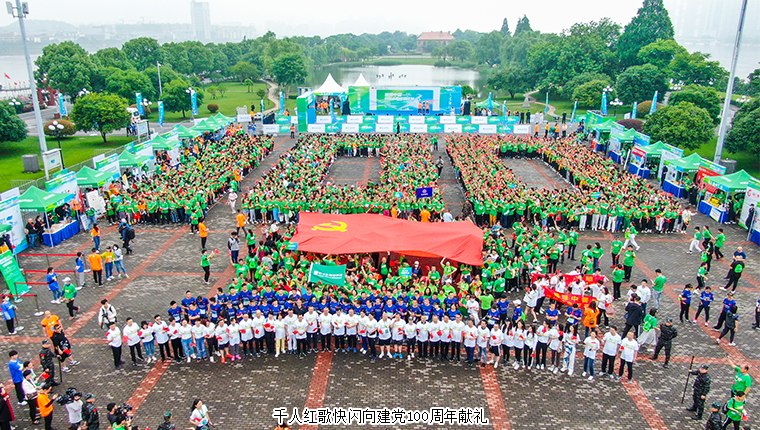 3000多名“綠跑俠”在橘子洲高噴廣場整齊排列出數(shù)字“100”的方陣和黨旗方陣,以紅歌快閃的形式共同唱響《歌唱祖國》,用嘹亮的歌聲向建黨100周年獻上最美好的告白和祝福!