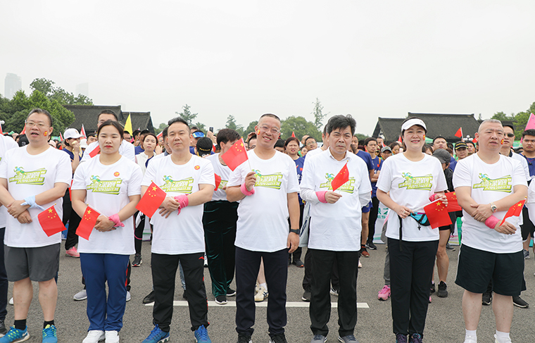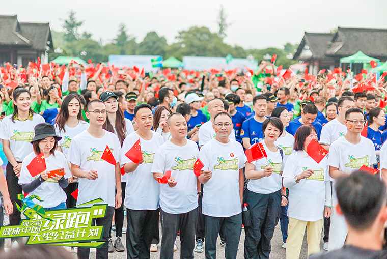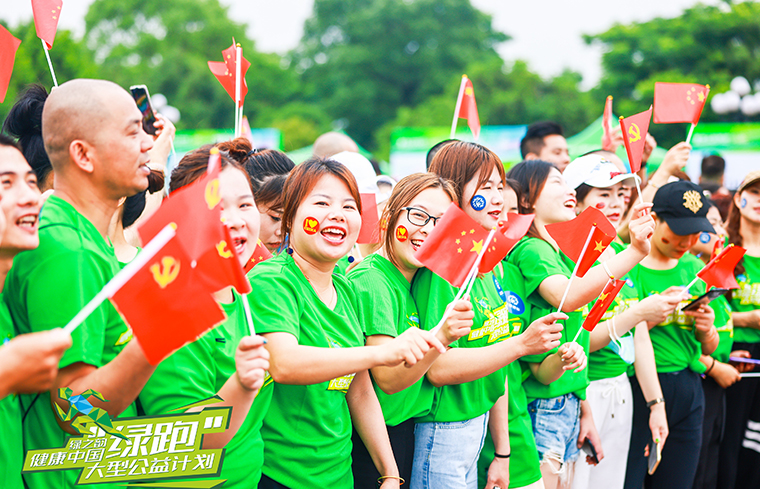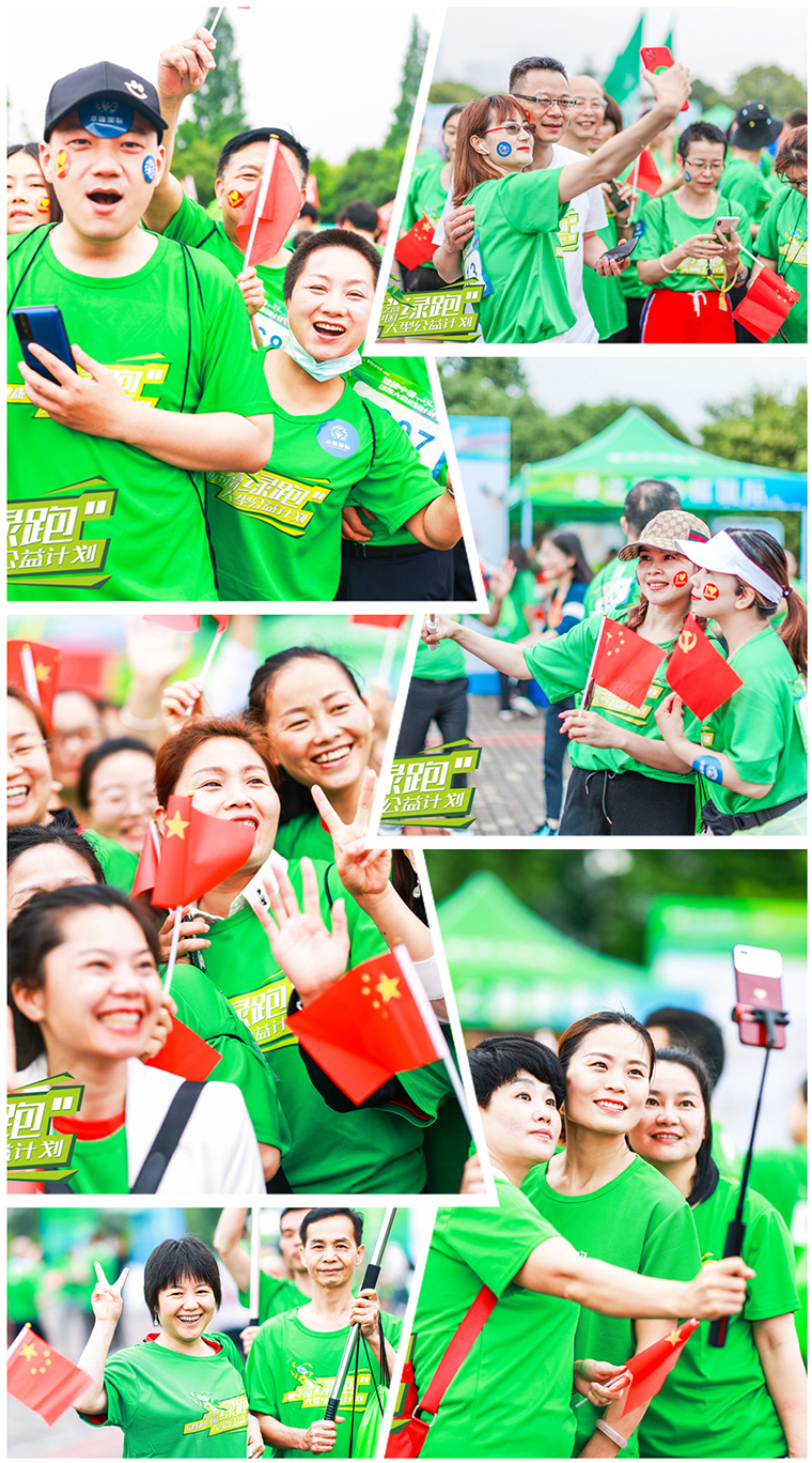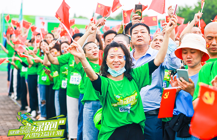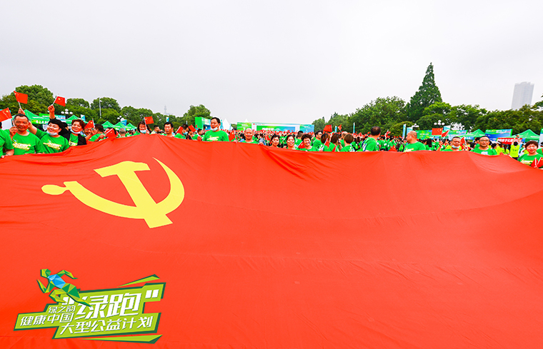 起跑前,綠跑還舉行了盛大的傳旗儀式。“綠跑俠”們紛紛伸出自己的雙手傳遞旗幟往前走,當(dāng)書寫著“健康中國·綠跑”六個大字的主題大旗從人群頭頂傳過,在綠跑隊伍中迅速傳遞時,全場歡呼聲與掌聲此起彼伏。