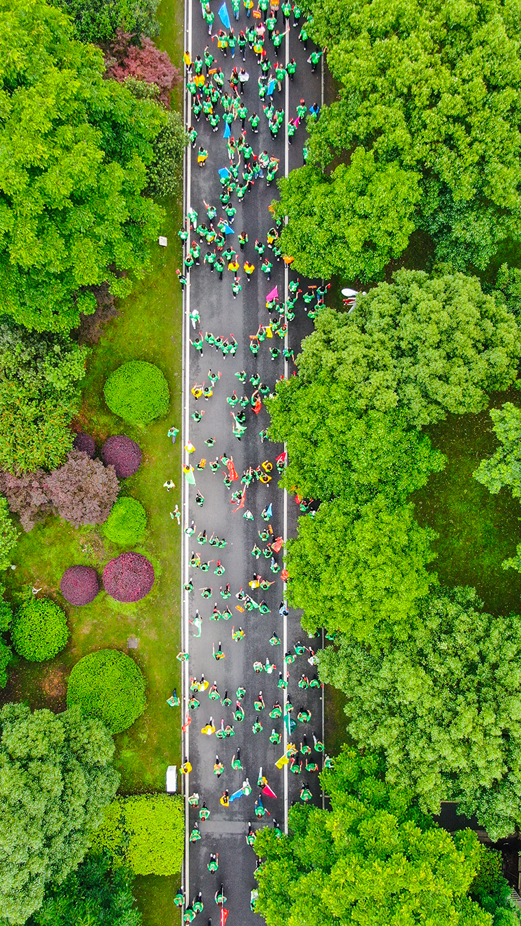 隨著一聲發(fā)令槍響,“綠跑俠”們仿佛離弦之箭,向著終點飛奔而去。此次橘洲賽道全長5.20公里,從橘子洲噴泉廣場出發(fā),途經(jīng)桂桃梅竹四園、柑橘文化園、毛澤東青年藝術(shù)雕塑等人文景點。“綠跑俠”們一邊快樂地奔跑在寬闊的跑道上,一邊感受著人、自然和文化的完美交融。