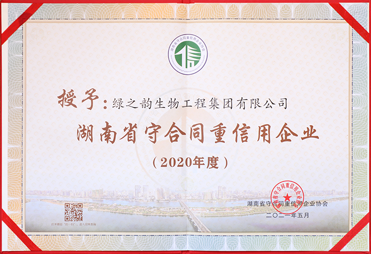 喜訊!綠之韻集團(tuán)再次獲評湖南省“守合同重信用”企業(yè)