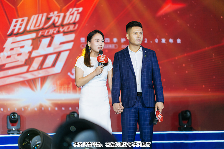 人生中每個(gè)腳印都是相連的。沒有白費(fèi)的努力,也沒有碰巧的成功,一切機(jī)緣巧合其實(shí)都是水到渠成。在現(xiàn)場千余名綠之韻幸福國際家人們的見證下,大會(huì)舉行了盛大的頒獎(jiǎng)儀式。200余名“2020-2021年度高級經(jīng)理”身著盛裝,在星光閃爍中走上舞臺(tái),共享榮耀時(shí)刻。獲獎(jiǎng)代表邱龍、左左伉儷分享獲獎(jiǎng)感言。