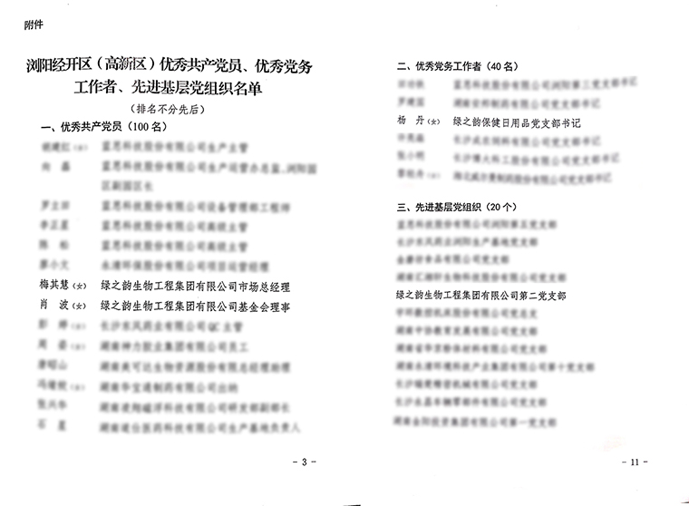 2021年6月30日,瀏陽經(jīng)開區(qū)(高新區(qū))優(yōu)秀共產(chǎn)黨員、優(yōu)秀黨務(wù)工作者和先進(jìn)基層黨組織表彰大會在金陽文化藝術(shù)中心召開。瀏陽經(jīng)開區(qū)(高新區(qū))黨工委副書記、管委會主任談文昌,黨工委委員、管委會副主任何六生,黨工委委員、管委會副主任羅其勝,黨工委委員、紀(jì)工委書記肖賽男等領(lǐng)導(dǎo)出席會議。綠之韻集團(tuán)黨委書記劉云帶領(lǐng)集團(tuán)優(yōu)秀黨員代表參加會議。