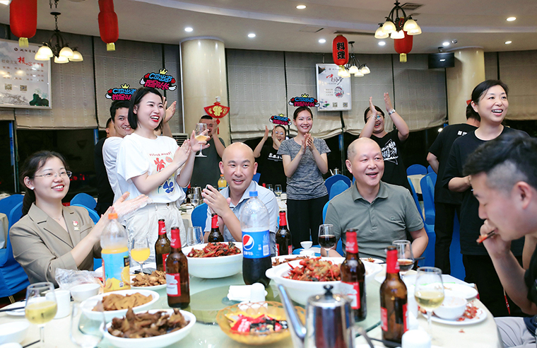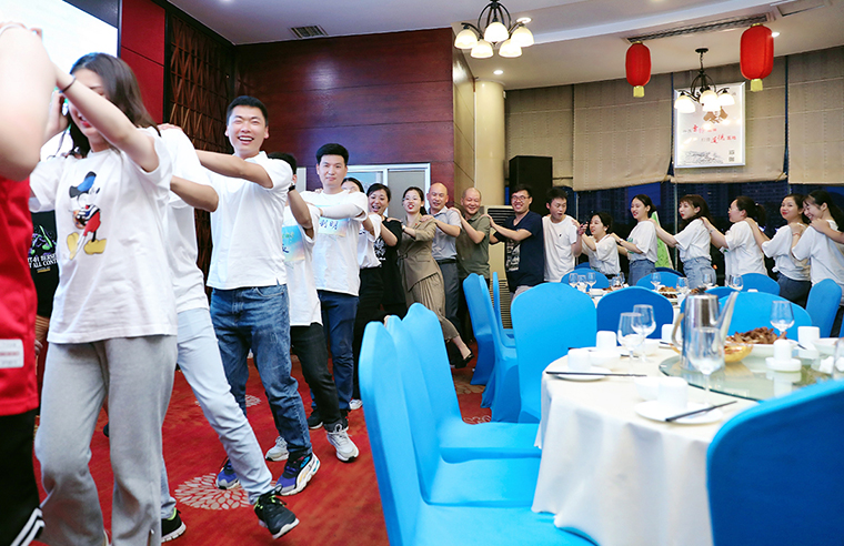 晚上的分享聯(lián)歡會(huì)也是熱鬧非凡。集團(tuán)公司的五年、十年員工代表作工作經(jīng)驗(yàn)分享?!秳⒑?抽浴非榫皠 ⅰ断嘈抛约骸泛铣?、《綠韻青年》詩(shī)朗誦……各小組精心準(zhǔn)備的團(tuán)隊(duì)節(jié)目掀起了晚會(huì)一次次高潮,現(xiàn)場(chǎng)不斷響起熱烈的掌聲和歡呼,成為一片歡樂(lè)的海洋。