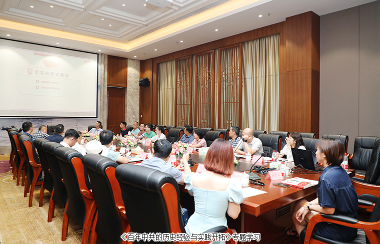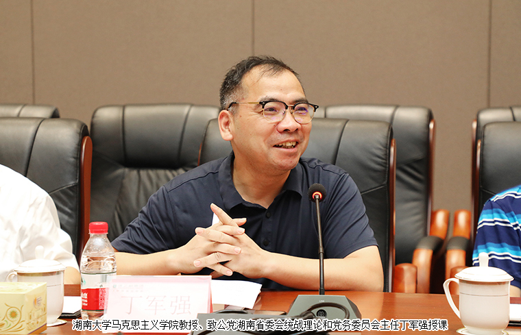 調(diào)研期間,湖南大學馬克思主義學院教授、致公黨湖南省委會統(tǒng)戰(zhàn)理論和黨務(wù)委員會主任丁軍強教授以《百年中共的歷史經(jīng)驗與實踐開拓》為題現(xiàn)場授課,分別從“百年中共的歷史進程與歷史經(jīng)驗”、“面向未來的理論創(chuàng)新與開拓創(chuàng)新”、“知史閱世的重大意義與學思悟踐”三個方面深層次解讀中國共產(chǎn)黨波瀾壯闊的百年黨史,并結(jié)合習近平總書記在慶祝中國共產(chǎn)黨成立100周年大會上的重要講話深入分析,深刻詮釋了中國共產(chǎn)黨為什么“能”、馬克思主義為什么“行”、中國特色社會主義為什么“好”,進一步領(lǐng)會中國共產(chǎn)黨先進的政治屬性、崇高的政治理想、高尚的政治追求、純潔的政治品質(zhì)。