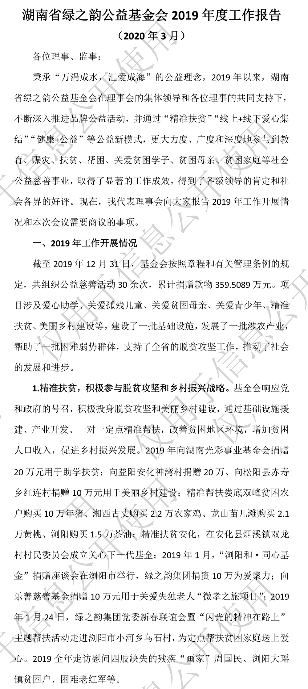 湖南省綠之韻公益基金會(huì)2019年度工作報(bào)告