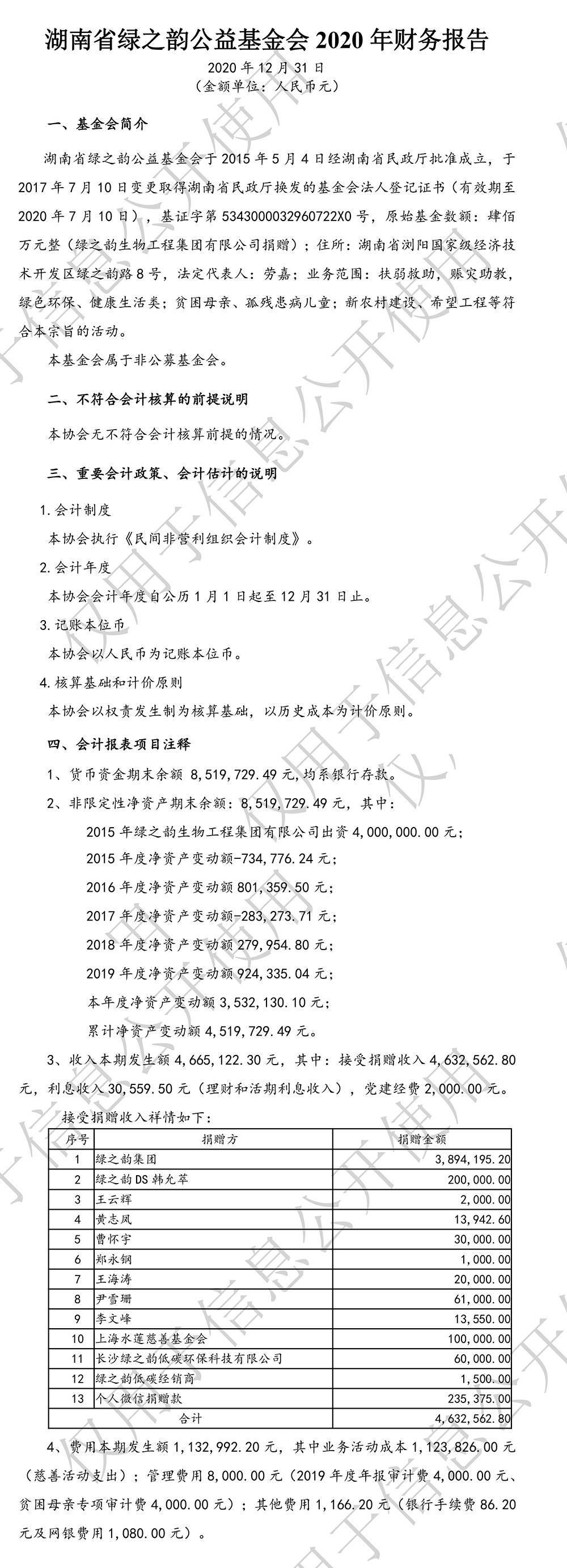 湖南省綠之韻公益基金會(huì)2020年財(cái)務(wù)報(bào)告
