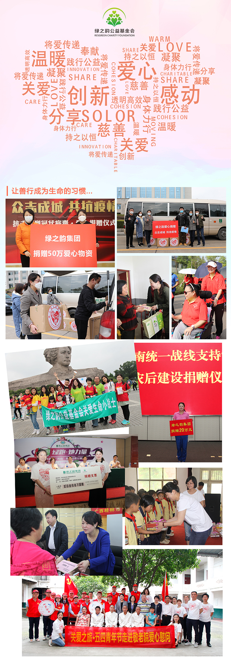 接過這份沉甸甸象征著愛與責(zé)任的牌匾,勞嘉總裁表示,公益慈善是一項光榮而崇高的事業(yè),此次“最美愛心企業(yè)家”獎項的獲得不僅代表了瀏陽市委市政府及社會各界對綠之韻在公益慈善事業(yè)中作出奉獻(xiàn)的高度認(rèn)可,更激勵了她在公益慈善的道路上繼續(xù)前行。綠之韻作為一家立足湖南瀏陽本土的民營企業(yè),我們深知企業(yè)與社會一脈相系,在發(fā)展的路上始終將企業(yè)發(fā)展與社會責(zé)任緊密相連,通過實實在在的行動推動社會點滴進(jìn)步。截止目前,綠之韻集團(tuán)已經(jīng)累計捐建了11所希望學(xué)校,踴躍參與和捐助了100多項品牌公益慈善項目,項目涉及賑災(zāi)濟(jì)困、興教助學(xué)、孤殘救助、醫(yī)療衛(wèi)生、修路飲水、養(yǎng)老醫(yī)療等多個領(lǐng)域,累計捐款捐物7000多萬元。除了大力參與賑災(zāi)、抗疫、扶貧、幫困等社會慈善事業(yè)之外,還積極開展關(guān)愛貧困母親、綠韻圓夢書香助學(xué)、關(guān)愛孤殘兒童、“綠跑”大型公益計劃等具有綠之韻品牌和社會影響力的公益活動。未來,綠之韻將以此為新的起點,繼續(xù)保持樂善好施精神,以更大力度、廣度和深度身體力行地投身慈善事業(yè),以大愛和善舉書寫慈善事業(yè)發(fā)展的新篇章。同時,盡最大努力號召更多社會愛心力量加入到公益慈善事業(yè)中,在挺進(jìn)前五強(qiáng),加快建成“兩個中心”,全面建設(shè)現(xiàn)代化新瀏陽的征程中繼續(xù)奮發(fā)作為,貢獻(xiàn)出自己的一份力量!