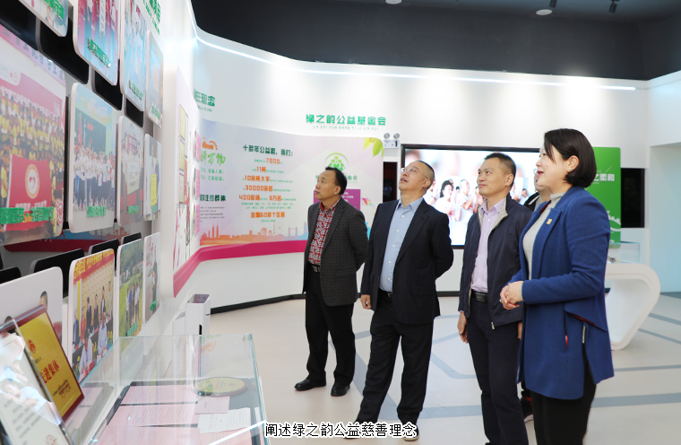 調(diào)研組一行參觀了綠之韻國際會議中心多功能形象展示廳,詳細(xì)了解了綠之韻集團的企業(yè)發(fā)展歷程、生產(chǎn)經(jīng)營狀況、企業(yè)文化建設(shè)、公益慈善以及非公黨建等方面的工作情況。在振興實業(yè)的同時,綠之韻積極承擔(dān)企業(yè)公民責(zé)任,踴躍參與100多項社會公益項目,涉及賑災(zāi)濟困、興教助學(xué)、孤殘救助、醫(yī)療衛(wèi)生、修路飲水、養(yǎng)老醫(yī)療等多個領(lǐng)域,累計捐款捐物達7000多萬元。綠之韻堅持把公益事業(yè)上升到企業(yè)發(fā)展戰(zhàn)略高度,積極探索新時代“互聯(lián)網(wǎng)+”、“黨委+公益基金會”、“微公益”等扶貧新模式,受到各級領(lǐng)導(dǎo)和社會各界的廣泛好評。先后被授予“全國優(yōu)秀中國特色社會主義事業(yè)建設(shè)者”“希望工程25周年杰出貢獻獎”、“中華慈善突出貢獻獎”、“全國‘萬企幫萬村’精準(zhǔn)扶貧行動先進民營企業(yè)”等多項榮譽稱號。綠之韻產(chǎn)業(yè)富民、回饋社會的良好企業(yè)形象得到了調(diào)研組一行的高度肯定。
