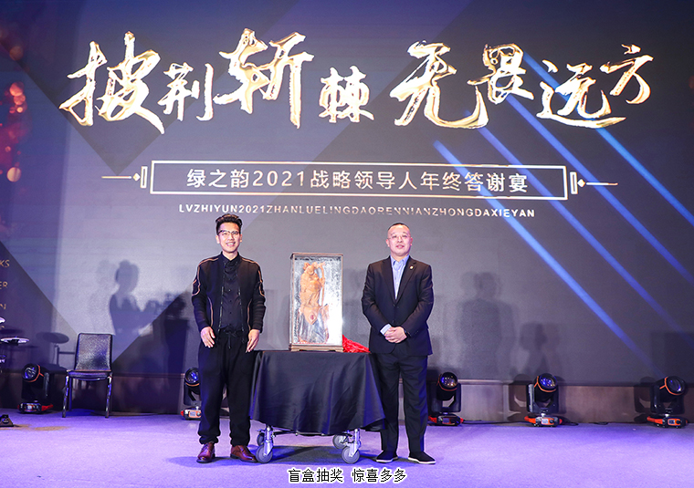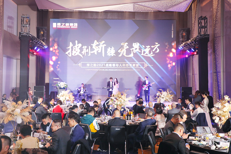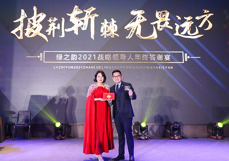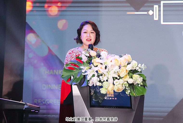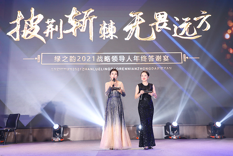 晚宴以“披荊斬棘·無畏遠(yuǎn)方”為主題。晚宴伊始,綠之韻集團(tuán)董事、總裁勞嘉致辭。她首先代表集團(tuán)公司對各位嘉賓、各位市場優(yōu)秀領(lǐng)導(dǎo)人的到來致以熱烈的歡迎和誠摯的問候!衷心感謝每一位新老朋友的努力和堅持,讓綠之韻這個品牌,在這個特殊的年份,不僅克服了重重困難,而且還取得了良性增長。即將邁入嶄新的2022,這將是我們鑒機(jī)識變、化危為贏、擼起袖子、彎道超車的一年。她堅信:任何困難、任何險阻、任何風(fēng)雨并不可怕,只要綠之韻人在一起,就會更有力量;只要我們披荊斬棘,無畏遠(yuǎn)方,心手相牽,明天就一定會更美好!