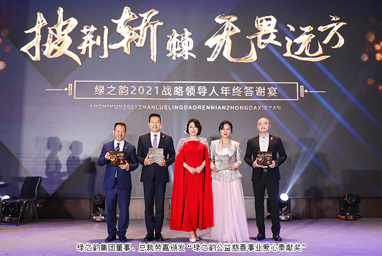 這一年,綠之韻繼續(xù)踐行著“關(guān)愛生命 造福人類”的理念,開展了一系列幫扶弱勢群體、愛心助學(xué)、鄉(xiāng)村振興公益品牌活動:橘子洲千人公益跑、馳援河南災(zāi)后重建、支援安化鄉(xiāng)村振興、致公·綠之韻(3)班開班……一場又一場的公益行動點亮了綠之韻的公益版圖,愛已經(jīng)成為綠之韻人生命的習(xí)慣。晚宴現(xiàn)場,綠之韻集團(tuán)董事、總裁,綠之韻公益基金會理事長勞嘉向過去一年中積極投身公益慈善事業(yè)的市場優(yōu)秀代表綠之韻碧波庭、綠之韻低碳、綠之韻天泰、綠之韻匯誠頒發(fā)“綠之韻公益慈善事業(yè)愛心奉獻(xiàn)獎”。