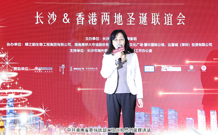 中共湖南省委統(tǒng)戰(zhàn)部二級巡視員劉麗輝在講話中表示,值此辭舊迎新之際,我們即將迎來充滿希望的2022年,她代表中共湖南省委統(tǒng)戰(zhàn)部向各位與會同胞致以親切的問候和節(jié)日的祝福。2021年在我們國家的歷史上是具有重要里程碑意義的一年。這一年我們迎來了中國共產(chǎn)黨100周年的華誕,這一年我們始終在克服百年不遇的疫情,這一年香港迎來了特色民主的新紀(jì)元。她相信,有黨中央的堅強領(lǐng)導(dǎo)、有內(nèi)地的鼎力支持、有在座各位的共同努力,香港和長沙的明天一定會更美好。