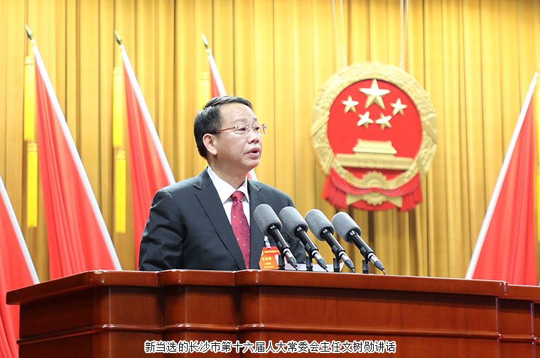 新當(dāng)選的長沙市第十六屆人大常委會主任文樹勛講話。他指出,市十六屆人大及其常委會任期的五年,是長沙現(xiàn)代化建設(shè)的關(guān)鍵五年。站在新的更高起點,我們要切實肩負(fù)起新時代新征程賦予人大的新使命新任務(wù),在新征程趕考路上奮力開創(chuàng)長沙人大工作新局面。一是要把堅持黨的全面領(lǐng)導(dǎo)作為堅定不移的政治坐標(biāo);二是要把始終堅持人民至上作為矢志不渝的價值取向;三是要把圍繞中心服務(wù)大局作為履職盡責(zé)的主題主線;四是要把全面提升工作質(zhì)量作為開創(chuàng)新局的重要任務(wù);五是要把奮力打造“四個機(jī)關(guān)”作為自身建設(shè)的目標(biāo)定位。牢記殷切囑托,勇?lián)鷷r代使命,為全面落實“三高四新”戰(zhàn)略定位和使命任務(wù)、全面建設(shè)現(xiàn)代化新長沙作出人大新的貢獻(xiàn)!