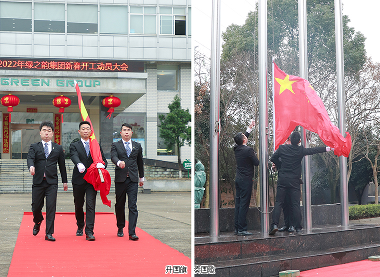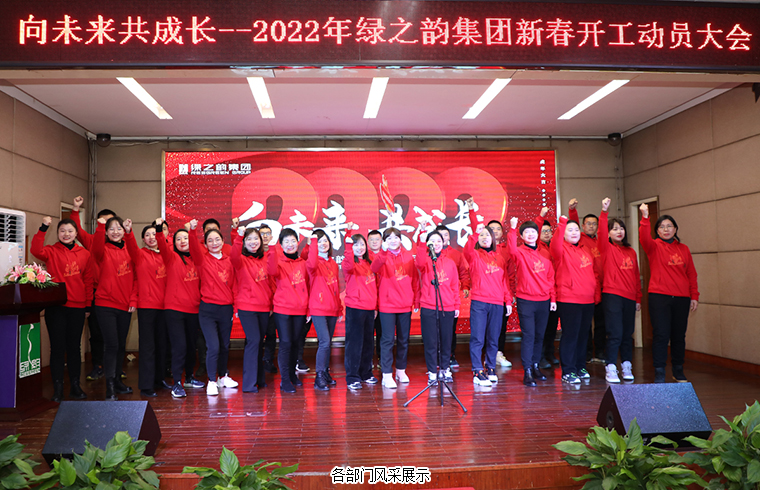 向未來,共成長!2022年2月8日(正月初八),綠之韻集團新春開工動員大會舉行。綠之韻集團董事長胡國安、董事總裁勞嘉、副總裁胡均安攜公司高管及全體員工參加活動。