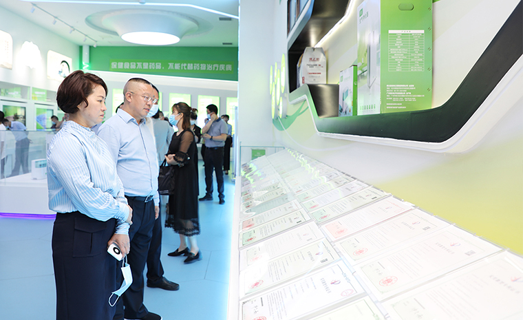 隨后,調(diào)研組一行來到綠之韻集團,參觀了綠之韻國際會議中心多功能形象展示廳和黨建文化教育基地。胡國安董事長就企業(yè)基本情況、產(chǎn)品研發(fā)、非公黨建和公益慈善等方面的工作向調(diào)研組一行做了詳細介紹。多年來,綠之韻積極響應(yīng)政府號召,不斷加大科研投入、深化“產(chǎn)學(xué)研”合作,先后與南京大學(xué)、湖南農(nóng)業(yè)大學(xué)、湖南省中醫(yī)藥大學(xué)、湖南中醫(yī)藥研究院等科研機構(gòu)、高等院校達成戰(zhàn)略合作,成立了產(chǎn)品專家委員會,提升產(chǎn)品核心競爭力。2021年11月,綠之韻集團博士后科研流動站協(xié)作研發(fā)中心正式授牌,標(biāo)志著綠之韻“一站三中心”的高層次人才培養(yǎng)與科研創(chuàng)新平臺的戰(zhàn)略布局初步成型。