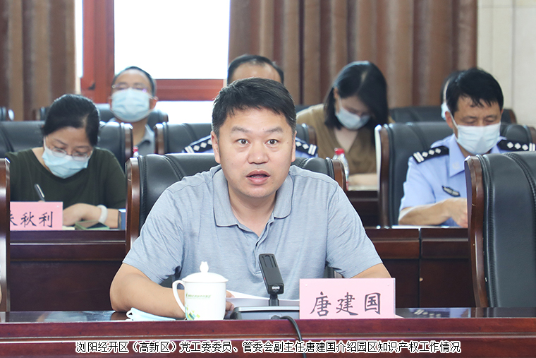 會(huì)議伊始,瀏陽經(jīng)開區(qū)(高新區(qū))黨工委委員、管委會(huì)副主任唐建國介紹園區(qū)知識(shí)產(chǎn)權(quán)工作情況。近年來,園區(qū)在省市相關(guān)部門的指導(dǎo)下,深入貫徹落實(shí)《知識(shí)產(chǎn)權(quán)強(qiáng)國建設(shè)綱要(2021-2035年)》,大力實(shí)施知識(shí)產(chǎn)權(quán)戰(zhàn)略,在完善知識(shí)產(chǎn)權(quán)管理、提升知識(shí)產(chǎn)權(quán)運(yùn)用轉(zhuǎn)化、優(yōu)化知識(shí)產(chǎn)權(quán)服務(wù)、加強(qiáng)知識(shí)產(chǎn)權(quán)保護(hù)等方面取得了一定的成績。下一階段,園區(qū)將深入貫徹落實(shí)強(qiáng)省會(huì)戰(zhàn)略,按照《關(guān)于打造保護(hù)知識(shí)產(chǎn)權(quán)標(biāo)桿城市支撐建設(shè)現(xiàn)代化新長沙的實(shí)施意見》等文件要求,提升知識(shí)產(chǎn)權(quán)創(chuàng)造能力,深化知識(shí)產(chǎn)權(quán)運(yùn)用效益,完善知識(shí)產(chǎn)權(quán)服務(wù)供給,凝聚知識(shí)產(chǎn)權(quán)保護(hù)合力,為長沙打造保護(hù)知識(shí)產(chǎn)權(quán)標(biāo)桿城市貢獻(xiàn)力量。