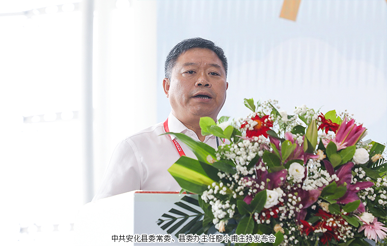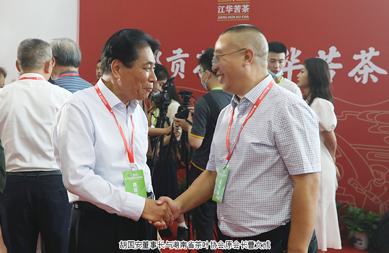 為深度契合新發(fā)展階段、新發(fā)展理念、新發(fā)展格局,進(jìn)一步激發(fā)茶葉消費潛力,促進(jìn)產(chǎn)銷對接,9月3日,安化黑茶高質(zhì)量發(fā)展新聞發(fā)布會在湖南國際會展中心舉行。中國茶葉流通協(xié)會會長王慶、中國茶葉流通協(xié)會副會長姚靜波;湖南省人大常委會原副主任蔡力峰,湖南省人大常委會原副主任葉紅專,湖南省民政廳副廳長游勁民,湖南中醫(yī)藥大學(xué)副校長劉鴻翔;湖南省茶葉協(xié)會原會長曹文成,湖南省茶葉協(xié)會會長周重旺,益陽市人民政府副市長何軍田;中共安化縣委書記石錄明,中共安化縣委常委、縣委辦主任廖小甫,縣委常委、副縣長楊華鋒,副縣長陽鋒,安化縣政協(xié)副主席肖偉群,安化縣人大常委會原主任、縣茶業(yè)協(xié)會會長蔣躍登等領(lǐng)導(dǎo)出席新聞發(fā)布會。湖南省政協(xié)委員、湖南省慈善總會副會長、湖南長沙市光彩事業(yè)基金會理事長、安化縣經(jīng)濟促進(jìn)會長沙分會理事長、長沙市安化商會會長胡國安受邀參加會議。