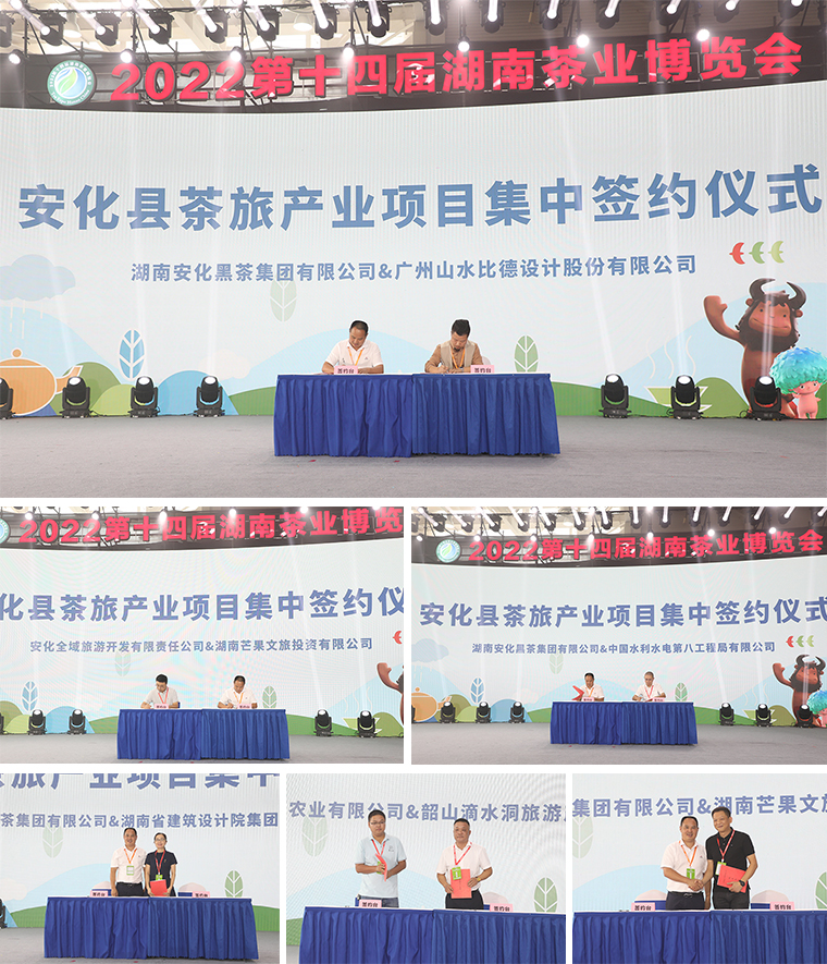 本次新聞發(fā)布會上還舉行了安化黑茶公共文化IP體系、廣告語首發(fā)儀式和安化縣茶旅產(chǎn)業(yè)項目集中簽約儀式。湖南芒果文旅投資有限公司、中國水利水電第八工程局有限公司等8家企業(yè)分別簽訂了投資協(xié)議和采購協(xié)議,為安化茶旅文康產(chǎn)業(yè)的融合發(fā)展掀起了新一輪浪潮。來自故宮博物院宮廷歷史部的王宜若,以安化“千兩貢茶”文物為主線,圍繞清代貢茶制度,為活動現(xiàn)場的數(shù)百位觀眾闡述了安化貢茶在清宮的進(jìn)貢制度及使用情況,展示安化貢茶在清宮生活中占據(jù)的重要地位。隨后,大會現(xiàn)場對我省茶產(chǎn)業(yè)高質(zhì)量發(fā)展進(jìn)程中做出卓越貢獻(xiàn)的“湖南杰出茶人”進(jìn)行了表彰。