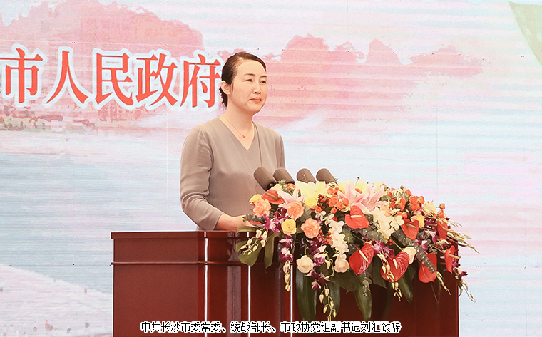 中共長(zhǎng)沙市委常委、統(tǒng)戰(zhàn)部長(zhǎng)、市政協(xié)黨組副書記劉匯致辭。她表示,今年是中國(guó)共產(chǎn)黨明確提出統(tǒng)一戰(zhàn)線政策100周年,百年來統(tǒng)一戰(zhàn)線為黨領(lǐng)導(dǎo)中國(guó)革命、建設(shè)、改革事業(yè)取得勝利的重要把關(guān),展現(xiàn)了顯著優(yōu)越性和強(qiáng)大生命力,為中華民族偉大復(fù)興的歷史偉業(yè)匯聚了磅礴力量。前不久,中共中央召開了統(tǒng)戰(zhàn)工作會(huì)議,習(xí)近平總書記深刻闡述了新時(shí)代統(tǒng)戰(zhàn)工作的指導(dǎo)思想、基本任務(wù)、工作重點(diǎn)、政策舉措,對(duì)做好新時(shí)代黨的統(tǒng)一戰(zhàn)線工作提出了12個(gè)必須的重要指示要求,這是新時(shí)代我們推進(jìn)統(tǒng)一戰(zhàn)線工作的根本遵循和行動(dòng)指南。統(tǒng)一戰(zhàn)線必須認(rèn)真學(xué)習(xí),深刻領(lǐng)會(huì),自覺踐行,堅(jiān)決落實(shí)。在中共長(zhǎng)沙市委的堅(jiān)強(qiáng)領(lǐng)導(dǎo)下,繼續(xù)凝心聚力、團(tuán)結(jié)奮斗、守正創(chuàng)新、勇毅前行,為加快落實(shí)“三高四新”戰(zhàn)略定位和使命任務(wù),奮力實(shí)施“強(qiáng)省會(huì)”戰(zhàn)略,全面建設(shè)現(xiàn)代化新長(zhǎng)沙做出新的更大貢獻(xiàn)。