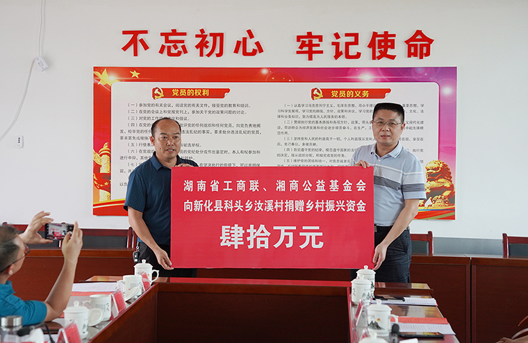 9月20日下午,在汝溪村召開了省工商聯(lián)對口幫扶新化縣鄉(xiāng)村振興座談會,了解新化縣貫徹全國、全省“萬企興萬村”行動推進會精神落實情況,聽取新化縣委、縣政府以及省工商聯(lián)駐縣工作組、駐汝溪工作隊的有關工作匯報。現(xiàn)場進行了公益捐贈和項目簽約,湘商公益基金會、綠之韻集團分別為汝溪村捐贈鄉(xiāng)村振興幫扶資金40萬元、13.5萬元,中華慈善總會幸福家園村社互助湖南聯(lián)絡辦公室向科頭鄉(xiāng)捐贈了一批價值475萬元的醫(yī)療設備,懷化正好制藥有限公司與汝溪村的廣東紫珠項目進行現(xiàn)場簽約。