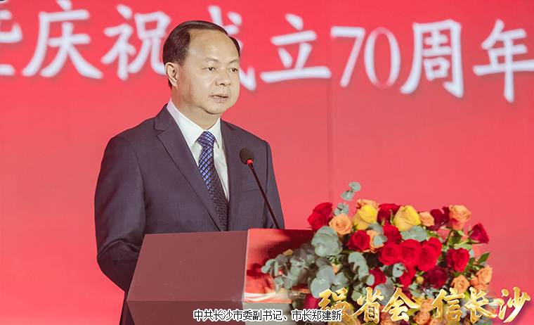 中共長(zhǎng)沙市委副書(shū)記、市長(zhǎng)鄭建新向市工商聯(lián)成立70周年表示熱烈祝賀,向?yàn)殚L(zhǎng)沙經(jīng)濟(jì)社會(huì)發(fā)展作出突出貢獻(xiàn)的廣大民營(yíng)經(jīng)濟(jì)人士表示衷心感謝,向?yàn)槭泄ど搪?lián)發(fā)展接續(xù)奮斗的歷屆老領(lǐng)導(dǎo)、老同志和全市工商聯(lián)系統(tǒng)工作者致以誠(chéng)摯問(wèn)候。他希望全市工商聯(lián)系統(tǒng)深刻學(xué)習(xí)領(lǐng)會(huì)黨的二十大精神,始終堅(jiān)持“兩個(gè)毫不動(dòng)搖”方針,緊緊圍繞“兩個(gè)健康”主題,著力當(dāng)好橋梁紐帶,做大民營(yíng)經(jīng)濟(jì)“蓄水池”;著力強(qiáng)化思想引領(lǐng),展現(xiàn)民營(yíng)經(jīng)濟(jì)“新氣象”;著力提升服務(wù)效能,構(gòu)筑民營(yíng)經(jīng)濟(jì)“強(qiáng)磁場(chǎng)”;著力強(qiáng)化自身建設(shè),當(dāng)好民營(yíng)經(jīng)濟(jì)“護(hù)航員”。長(zhǎng)沙市委、市政府將一如既往把工商聯(lián)工作擺在重要位置,支持工商聯(lián)更好地履行職能、發(fā)揮作用,團(tuán)結(jié)引導(dǎo)好廣大民營(yíng)經(jīng)濟(jì)人士共同推動(dòng)民營(yíng)經(jīng)濟(jì)高質(zhì)量發(fā)展,合力開(kāi)創(chuàng)長(zhǎng)沙工商聯(lián)事業(yè)新局面。