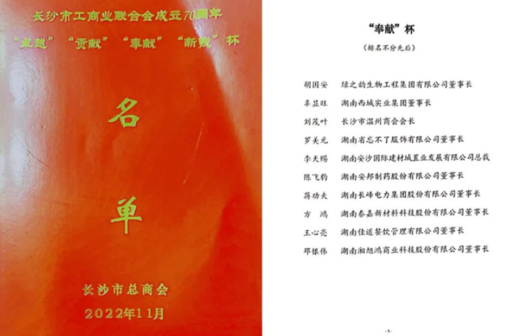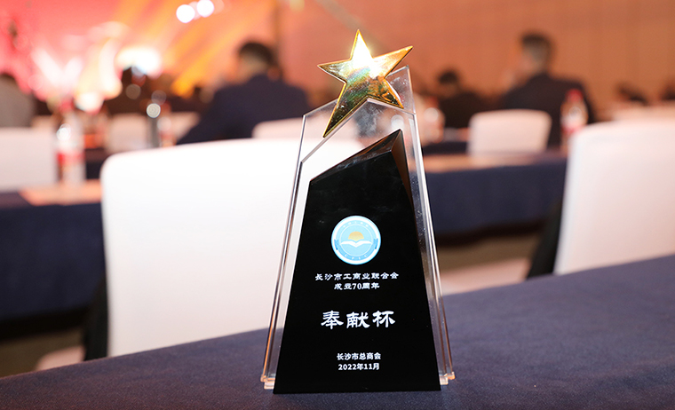 長(zhǎng)沙市工商聯(lián)深入學(xué)習(xí)貫徹黨的二十大精神暨慶祝成立70周年大會(huì)舉行,胡國(guó)安董事長(zhǎng)獲評(píng)“奉獻(xiàn)杯”企業(yè)家