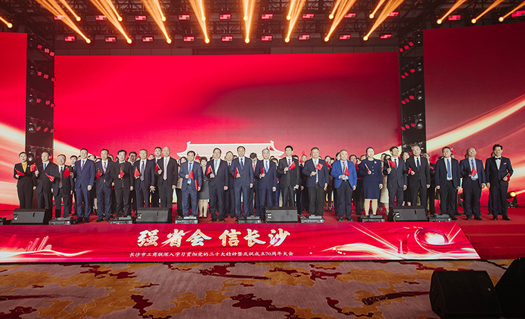 在黨的二十大勝利召開(kāi)、長(zhǎng)沙市工商聯(lián)成立七十周年、長(zhǎng)沙“企業(yè)家日”到來(lái)之際,為深入學(xué)習(xí)貫徹黨的二十大精神和中央統(tǒng)戰(zhàn)工作會(huì)議精神,總結(jié)回顧市工商聯(lián)過(guò)去70載的工作成效以及全市民營(yíng)經(jīng)濟(jì)發(fā)展的歷史經(jīng)驗(yàn),大力弘揚(yáng)企業(yè)家精神,2022年11月1日,長(zhǎng)沙市工商聯(lián)深入學(xué)習(xí)貫徹黨的二十大精神暨慶祝成立70周年大會(huì)在長(zhǎng)沙隆重舉行。