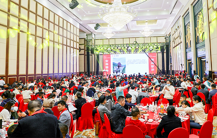 齊心同所愿,把酒敘鄉(xiāng)情。當(dāng)晚,還舉辦了2022長沙市安化商會(huì)年會(huì)。中共長沙市委統(tǒng)戰(zhàn)部副部長、市工商聯(lián)黨組書記何惠風(fēng),安化縣政協(xié)黨組書記、主席胡能華,長沙市工商聯(lián)副主席田桂元,安化縣人民政府副縣長瞿東江,縣政協(xié)黨組副書記、副主席廖小寒,安化縣政協(xié)副主席、縣工商聯(lián)主席劉暢術(shù),湖南安化經(jīng)濟(jì)開發(fā)區(qū)管理委員會(huì)主任胡盛云;羽毛球世界冠軍黃穗、羽毛球奧運(yùn)冠軍田卿等領(lǐng)導(dǎo)、嘉賓出席大會(huì)。湖南省政協(xié)委員、湖南省慈善總會(huì)副會(huì)長、湖南長沙市光彩事業(yè)基金會(huì)理事長、綠之韻集團(tuán)董事長胡國安與長沙市安化商會(huì)全體會(huì)員、安化各大商會(huì)代表、長沙各行業(yè)安化籍知名企業(yè)和精英人士近300人齊聚一堂,共迎未來發(fā)展新征程。