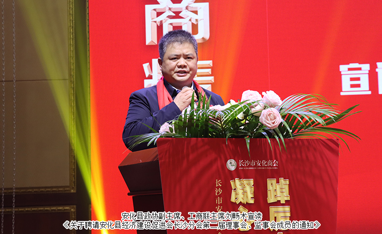 安化縣政協(xié)黨組書記、主席胡能華對(duì)新當(dāng)選的理事會(huì)成員表示熱烈的祝賀,并向各位鄉(xiāng)友通報(bào)了安化縣今年的經(jīng)濟(jì)和社會(huì)發(fā)展情況。他表示,今年來,安化全力以赴抓好高質(zhì)量發(fā)展各項(xiàng)工作,主要經(jīng)濟(jì)指標(biāo)穩(wěn)步增長,經(jīng)濟(jì)社會(huì)發(fā)展大局穩(wěn)中向好。堅(jiān)持優(yōu)先發(fā)展,全面啟動(dòng)文化振興引領(lǐng)鄉(xiāng)村振興。堅(jiān)持集聚集群,產(chǎn)業(yè)發(fā)展勢頭強(qiáng)勁。全力推進(jìn)茶旅、礦產(chǎn)建材、生物醫(yī)藥、新能源、新材料五大產(chǎn)業(yè)鏈建設(shè)。堅(jiān)持質(zhì)效并舉,項(xiàng)目建設(shè)蹄疾步穩(wěn)。安化抽水蓄能電站正式開工,溫德姆至尊豪庭酒店開門迎客,安化黑茶特色小鎮(zhèn)、官新高速、東渠公路、青云洞--云上九歌等項(xiàng)目加速推進(jìn)。堅(jiān)持以人為本,民生福祉不斷增進(jìn)。高質(zhì)量舉辦全省“三下鄉(xiāng)”、湘臺(tái)茶香會(huì)、第四屆“湖南黃精”高峰論壇、全市首屆文旅融合發(fā)展大會(huì),安化的美譽(yù)度、知名度不斷攀升。這些成績離不開廣大安商的共同支持和創(chuàng)造,他希望商會(huì)全體會(huì)員能一如既往地為家鄉(xiāng)建設(shè)建言獻(xiàn)策,繼續(xù)發(fā)揮好橋梁紐帶作用,積極宣傳家鄉(xiāng)、推介安化,讓更多企業(yè)家朋友來安化投資興業(yè),實(shí)現(xiàn)財(cái)富夢想,共筑美好未來。