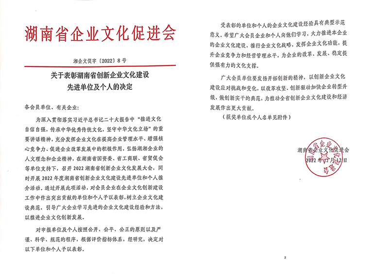 湖南省政協(xié)副主席、省工商聯(lián)主席張健講話。他首先代表湖南省工商聯(lián)向大會(huì)的召開表示熱烈的祝賀,向參會(huì)的各位嘉賓和企業(yè)家代表致以誠摯的問候。習(xí)近平總書記在黨的二十大報(bào)告中指出“推進(jìn)文化自信自強(qiáng),鑄就社會(huì)主義文化新輝煌”。企業(yè)文化建設(shè)是企業(yè)可持續(xù)發(fā)展的內(nèi)在動(dòng)力,決定著企業(yè)的戰(zhàn)略方向、經(jīng)營理念、管理水平和員工素質(zhì),決定著企業(yè)的核心競(jìng)爭(zhēng)力。要深入學(xué)習(xí)貫徹黨的二十大精神和習(xí)近平總書記的系列講話精神,大力弘揚(yáng)偉大建黨精神,加強(qiáng)政治引領(lǐng),凝聚智慧力量,堅(jiān)定文化自信,推動(dòng)企業(yè)文化建設(shè)工作品牌的打造,團(tuán)結(jié)引領(lǐng)廣大民營經(jīng)濟(jì)人士,以優(yōu)質(zhì)高效的服務(wù)推動(dòng)民營經(jīng)濟(jì)高質(zhì)量發(fā)展,全面落實(shí)“三高四新”的戰(zhàn)略定位和使命任務(wù),為全面建設(shè)富強(qiáng)民主文明和諧美麗的社會(huì)主義現(xiàn)代化強(qiáng)國貢獻(xiàn)我們民營經(jīng)濟(jì)的力量。