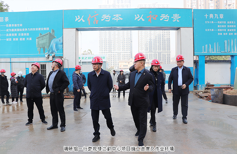 調(diào)研組一行在項(xiàng)目工作人員的引導(dǎo)下,查看了整個(gè)項(xiàng)目的施工進(jìn)度及作業(yè)環(huán)境,了解綠之韻中心項(xiàng)目建設(shè)安全生產(chǎn)、綠色施工、未來發(fā)展等情況,并親切慰問項(xiàng)目工作人員春節(jié)返鄉(xiāng)、安置等情況。