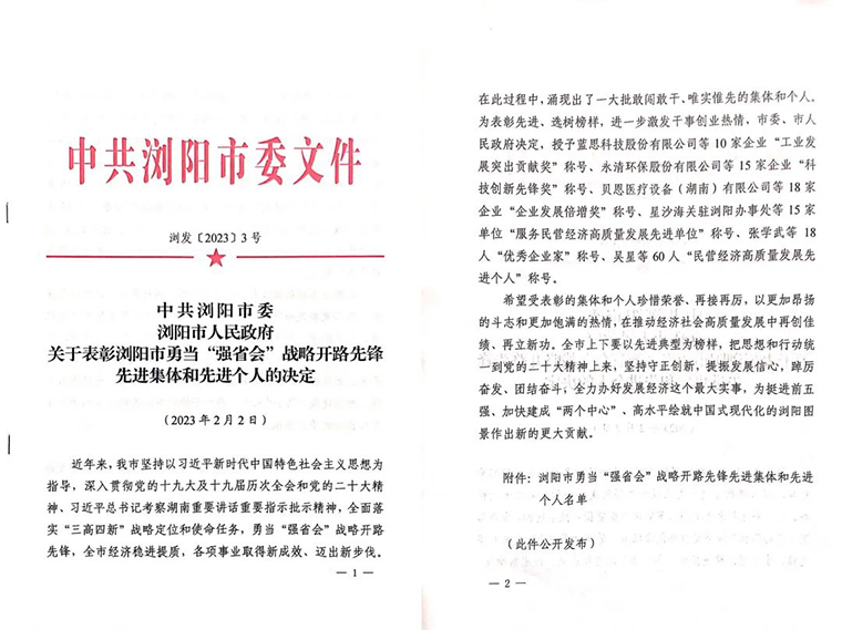 會(huì)上,中共瀏陽(yáng)市委常委、常務(wù)副市長(zhǎng)馮賽軍宣讀了由瀏陽(yáng)市委市政府印發(fā)的《瀏陽(yáng)市人民政府關(guān)于2022年度財(cái)政性資金獎(jiǎng)勵(lì)政策兌現(xiàn)的通知》《中共瀏陽(yáng)市委瀏陽(yáng)市人民政府關(guān)于表彰瀏陽(yáng)市勇當(dāng)“強(qiáng)省會(huì)”戰(zhàn)略開(kāi)路先鋒先進(jìn)集體和先進(jìn)個(gè)人的決定》,對(duì)近年來(lái)在瀏陽(yáng)市深入貫徹黨的十九屆歷次全會(huì)及黨的二十大精神、全面落實(shí)“三高四新”戰(zhàn)略定位和使命任務(wù)、勇當(dāng)強(qiáng)省會(huì)戰(zhàn)略開(kāi)路先鋒、推動(dòng)經(jīng)濟(jì)高質(zhì)量發(fā)展中涌現(xiàn)出的一大批敢闖敢干、唯實(shí)惟先先進(jìn)單位和個(gè)人予以表彰獎(jiǎng)勵(lì)。綠之韻集團(tuán)憑借著在產(chǎn)品研發(fā)、科技創(chuàng)新方面的優(yōu)異表現(xiàn)榮獲瀏陽(yáng)市“科技創(chuàng)新先鋒獎(jiǎng)”。