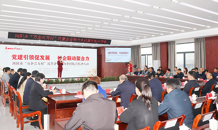 中共瀏陽市委常委、組織部部長唐安石講話。他向長期以來關(guān)心支持瀏陽鄉(xiāng)村振興的廣大企業(yè)家和社會各界人士表示衷心的感謝。他提出,一是要強(qiáng)化黨建引領(lǐng)。鄉(xiāng)鎮(zhèn)要當(dāng)好全面推進(jìn)鄉(xiāng)村振興的一線作戰(zhàn)部,做到黨委強(qiáng)、機(jī)制順、隊(duì)伍活。村支書要發(fā)揮領(lǐng)頭雁作用,帶領(lǐng)村兩委班子苦干實(shí)干,攻堅(jiān)克難。駐村第一書記和工作隊(duì)要切實(shí)履職盡責(zé),廣大農(nóng)村黨員要發(fā)揮先鋒模范作用,帶領(lǐng)群眾奮發(fā)圖強(qiáng)。民營企業(yè)黨組織要積極承擔(dān)社會責(zé)任,助力鄉(xiāng)村振興共同富裕,把黨的組織優(yōu)勢轉(zhuǎn)化為推動鄉(xiāng)村全面振興的強(qiáng)大動能。二是要抓好產(chǎn)業(yè)發(fā)展。萬企興萬村要取得實(shí)效,關(guān)鍵在產(chǎn)業(yè)。按照“一村一品”的思路幫扶,培育壯大特色優(yōu)勢產(chǎn)業(yè),打造精品產(chǎn)業(yè)。三是要做實(shí)企業(yè)服務(wù),支持民營企業(yè)民營經(jīng)濟(jì)發(fā)展壯大,始終把民營企業(yè)和民營企業(yè)家當(dāng)作自己人,為企業(yè)提供“誠心、用心、專心、精心、傾心”為代表的“五心”級服務(wù),全力優(yōu)化營商環(huán)境,助推民營企業(yè)高質(zhì)量發(fā)展。