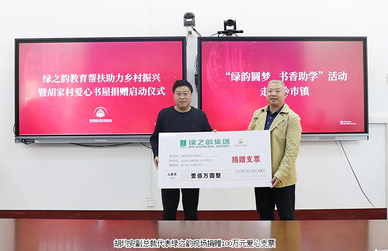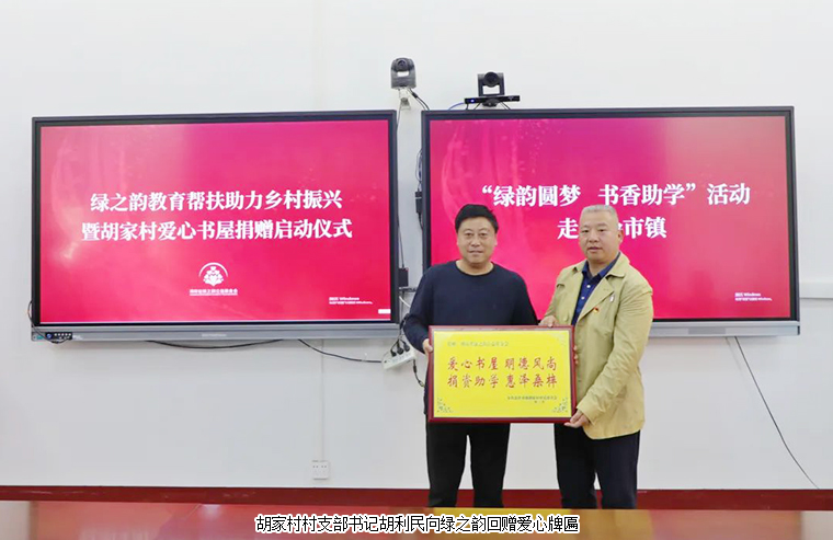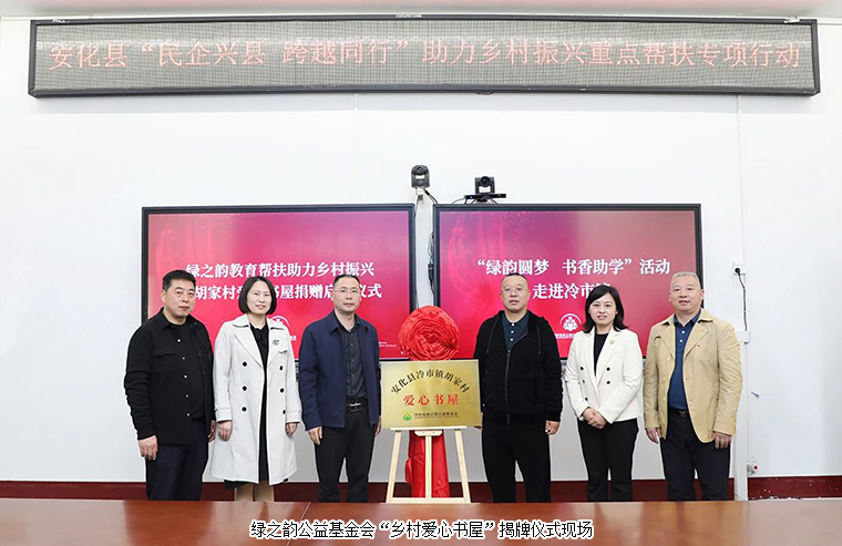 為積極響應(yīng)湖南省“民企興縣 跨越同行”助力鄉(xiāng)村振興重點幫扶縣專項行動,2023年3月31日,綠之韻集團通過湖南省綠之韻公益基金會“書香助學(xué)項目”捐贈100萬元愛心款項,用于安化縣冷市鎮(zhèn)胡家村愛心書屋建設(shè)及在安化大橋?qū)W校設(shè)立“綠韻圓夢獎學(xué)金”,支持鄉(xiāng)村振興文化建設(shè)和教育事業(yè)發(fā)展。