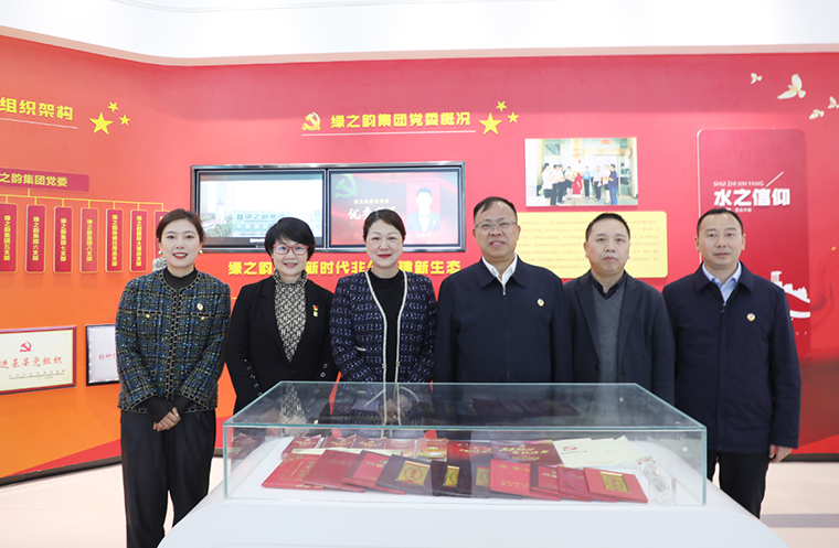 在黨建文化展示區(qū)域,綠之韻集團黨委書記劉云向調(diào)研組一行詳細介紹綠之韻非公黨建情況。多年來,集團黨委堅持構(gòu)建以集團黨組織為核心,以集團工會、公益基金會為主體,打造紅色基因塑造的新時代非公黨建新生態(tài),在全行業(yè)內(nèi)創(chuàng)建了第一家黨建文化教育基地,形成了具有綠之韻特色的非公黨建工作品牌。集團黨委歷年來多次被各級黨組織授予“先進基層黨組織”、“黨建示范點”、“標桿引領(lǐng)先進基層黨組織”等榮譽稱號。