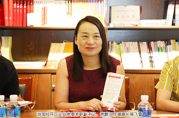 瀏陽經(jīng)開區(qū)企業(yè)黨委專職副書記、黨群工作局局長陳飛雪詳細(xì)介紹了園區(qū)的企業(yè)類型,并就非公企業(yè)如何開展黨建工作進(jìn)行了深入的交流。她表示,黨建工作的成果與企業(yè)的經(jīng)濟(jì)效益是成正比的,緊抓黨建的做法對企業(yè)的發(fā)展能起到很好的促進(jìn)作用。非公企業(yè)在黨建工作的開展中要充分發(fā)揮黨組織的政治引領(lǐng)作用,以黨建帶動群建、工建、婦建、團(tuán)建等全盤組織建設(shè);要堅持“以人為本”的理念,讓員工在企業(yè)得到歸屬感和幸福感,精神上的關(guān)愛往往比物質(zhì)上的獎勵更能留住人才。她希望,今后經(jīng)開區(qū)與望城區(qū)能多多加強(qiáng)黨建方面的溝通與交流,相互學(xué)習(xí)、共同積累優(yōu)秀的黨建工作經(jīng)驗,讓黨建成為推動企業(yè)發(fā)展的動力源泉,為省市經(jīng)濟(jì)社會發(fā)展作出更大貢獻(xiàn)!