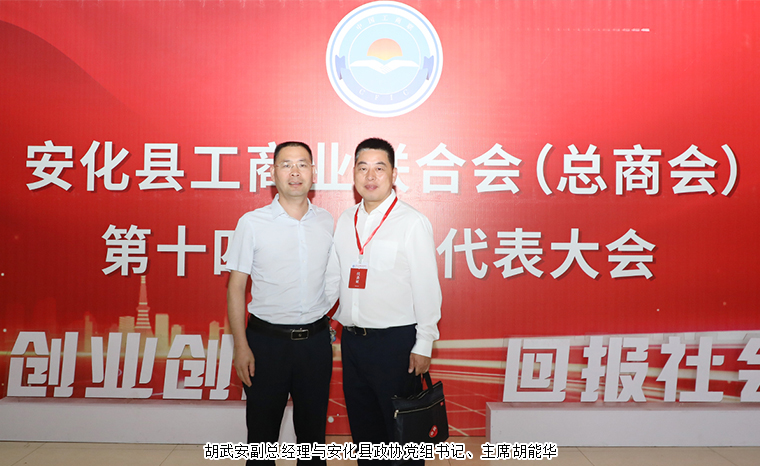 2023年6月16日,安化縣工商業(yè)聯(lián)合會(huì)(總商會(huì))第十四屆會(huì)員代表大會(huì)召開(kāi)。益陽(yáng)市政協(xié)副主席、市工商聯(lián)主席鄧象庭,中共安化縣委書(shū)記石錄明,中共安化縣委副書(shū)記、統(tǒng)戰(zhàn)部部長(zhǎng)李豐,安化縣政協(xié)黨組書(shū)記、主席胡能華,安化縣人大常委會(huì)黨組副書(shū)記、副主任龍要平,安化縣人民政府黨組成員、副縣長(zhǎng)莫超,安化縣政協(xié)副主席、縣工商聯(lián)主席劉暢術(shù),中共安化縣委統(tǒng)戰(zhàn)部常務(wù)副部長(zhǎng)夏躍平,安化縣工商聯(lián)黨組書(shū)記夏昳等領(lǐng)導(dǎo)出席會(huì)議。長(zhǎng)沙市人大代表、長(zhǎng)沙市安化商會(huì)會(huì)長(zhǎng)、綠之韻集團(tuán)董事長(zhǎng)胡國(guó)安,安化縣政協(xié)委員、綠之韻集團(tuán)副總經(jīng)理胡武安受邀參加會(huì)議。