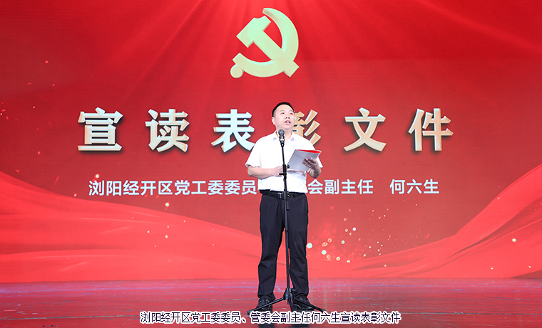 6月30日,“奮進(jìn)新征程,建功新時(shí)代”瀏陽(yáng)經(jīng)開(kāi)區(qū)2023年度“七一”表彰活動(dòng)召開(kāi)。瀏陽(yáng)經(jīng)開(kāi)區(qū)黨工委書(shū)記鄭以仁,黨工委委員、管委會(huì)副主任何六生等領(lǐng)導(dǎo)出席會(huì)議。綠之韻集團(tuán)黨委書(shū)記劉云帶領(lǐng)集團(tuán)優(yōu)秀黨員代表參加會(huì)議。