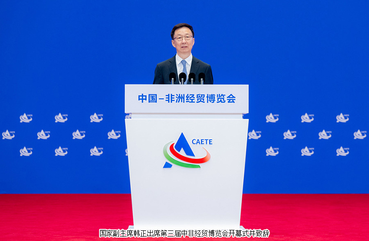 國家副主席韓正表示,設(shè)立中國-非洲經(jīng)貿(mào)博覽會,是習(xí)近平主席親自批準(zhǔn)的重大對非合作舉措。2013年3月,習(xí)主席出訪非洲時,首次提出真實(shí)親誠對非政策理念和正確義利觀。十年來,無論國際風(fēng)云如何變幻,中非始終真誠友好、團(tuán)結(jié)合作,高層交往更加密切,合作規(guī)模不斷擴(kuò)大,合作領(lǐng)域持續(xù)拓展,結(jié)成休戚與共的命運(yùn)共同體和合作共贏的利益共同體,取得了豐碩成果,造福了中非廣大人民。他指出,當(dāng)今世界,多重挑戰(zhàn)和危機(jī)交織疊加,發(fā)展鴻溝不斷拉大。中方愿以中國式現(xiàn)代化和中國高質(zhì)量發(fā)展為非方提供新機(jī)遇,推動中非務(wù)實(shí)合作走深走實(shí)。中方堅(jiān)定支持非洲走獨(dú)立自主的發(fā)展道路,將深入推進(jìn)中非共建“一帶一路”合作,同非洲國家持續(xù)深化戰(zhàn)略對接、加強(qiáng)產(chǎn)業(yè)鏈供應(yīng)鏈合作、著力提升聯(lián)通水平、共同聚焦可持續(xù)發(fā)展、堅(jiān)定推進(jìn)開放發(fā)展,推動構(gòu)建更加緊密的中非命運(yùn)共同體。他表示,中非合作不斷向全方位、多層次、高質(zhì)量發(fā)展,在南南合作和國際對非合作中發(fā)揮著重要引領(lǐng)作用,為構(gòu)建新型國際關(guān)系樹立了典范。本屆博覽會將為中非雙方打造對接交流、探討合作的良好平臺。歡迎中非各界積極參與博覽會活動,共同譜寫中非經(jīng)貿(mào)合作高質(zhì)量發(fā)展新篇章,共享新時代繁榮發(fā)展新未來。