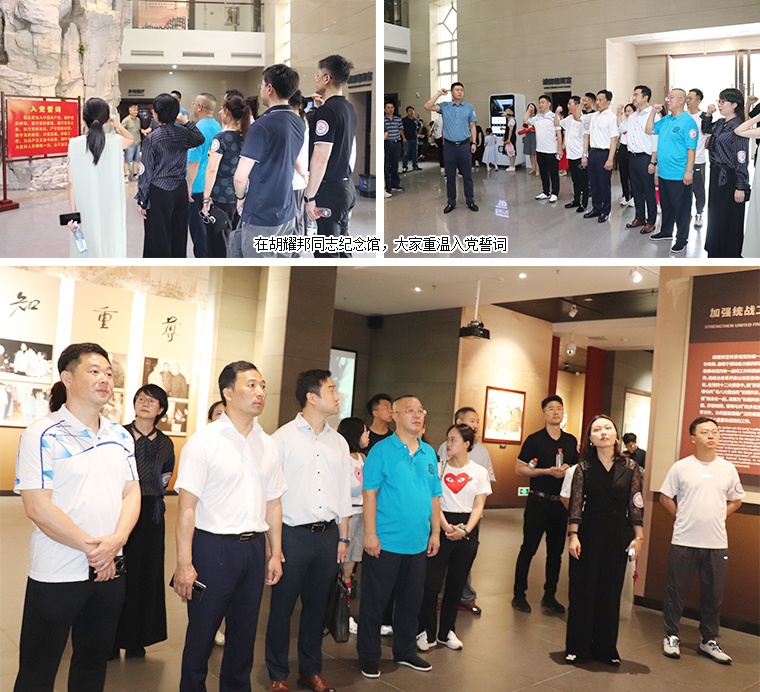 活動第一站,聯(lián)誼會一行首先前往了胡耀邦故居參觀。從瀏陽城區(qū)出發(fā),沿著荷文公路前行,賞一路白墻紅瓦,看一路青翠山林。在講解員的引領(lǐng)下,大家懷著無比崇敬的心情參觀胡耀邦故居,全面了解胡耀邦同志不搞特殊、以人為本、親民愛民的光輝而又偉大的一生,學(xué)習(xí)他堅(jiān)守信仰、獻(xiàn)身理想的高尚品質(zhì)和“心在人民、利歸天下”的為民情懷。來到胡耀邦同志紀(jì)念館,面對鮮紅的黨旗,全體人員高舉右拳:“我志愿加入中國共產(chǎn)黨,擁護(hù)黨的綱領(lǐng),遵守黨的章程……”大家重溫入黨誓詞,用錚錚誓言彰顯共產(chǎn)黨人的初心使命,表達(dá)對革命先輩的追思、懷念和崇敬之情。
