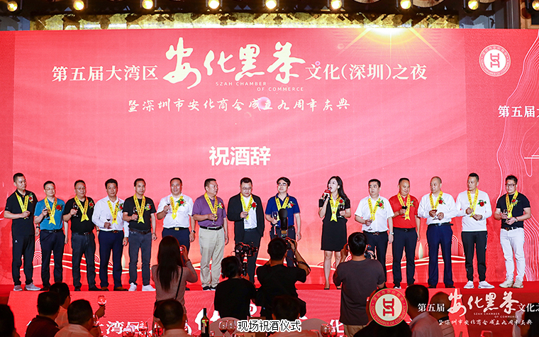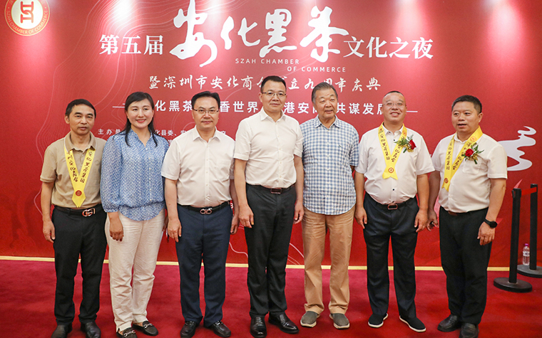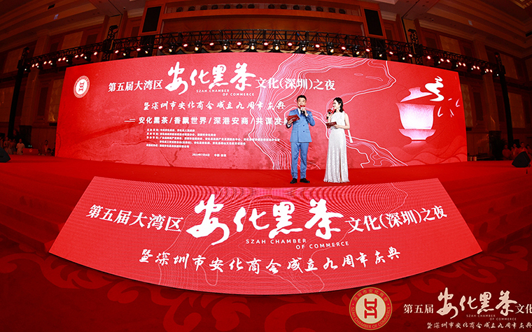 2023第五屆安化黑茶文化之夜由安化縣委、縣政府主辦,安化縣經(jīng)濟建設(shè)促進會深港分會和深圳市安化商會承辦。“凝聚安商,茶行天下”是安化黑茶走出安化,走向世界的有力推動。深圳作為國際化的大都市,在傳播推薦安化黑茶不僅起到了橋梁紐帶作用,而且在將安化黑茶出湘出海方面起到了不可小覷的作用。本屆安化黑茶文化之夜集合了業(yè)內(nèi)眾多專家學(xué)者、企業(yè)家,在多方共同努力下,協(xié)力呈現(xiàn)了一場攜手與共的黑茶文化盛宴。活動同期還舉行了深圳市安化商會成立九周年慶典。