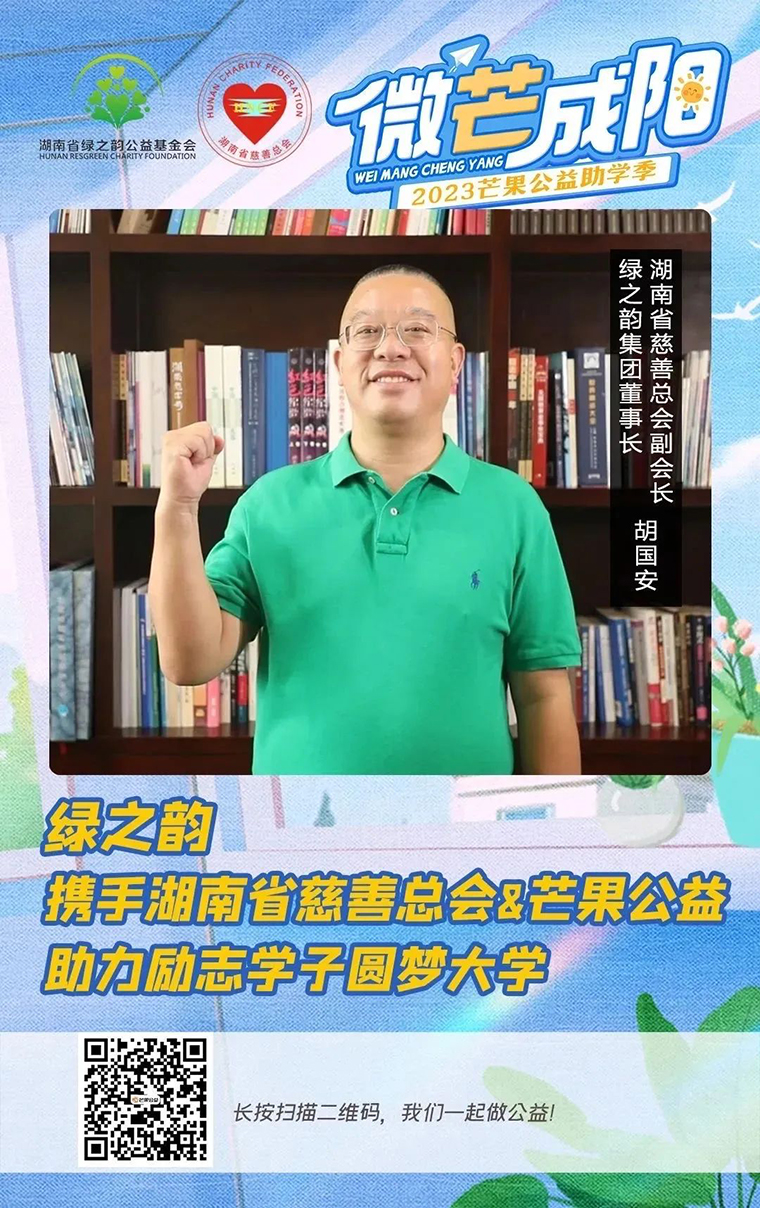 愛心改變命運,圓勵志學(xué)子大學(xué)夢。今年7月,綠之韻公益基金會攜手湖南省慈善總會、芒果公益開啟“愛心改變命運”助學(xué)季,上線“2023愛心改變命運”網(wǎng)絡(luò)籌款募捐項目,累計向社會籌措助學(xué)資金30余萬元,用于資助湖南省內(nèi)勵志學(xué)子圓夢大學(xué)。8月31日,在“愛心改變命運”慈善助學(xué)活動現(xiàn)場,綠之韻公益基金會向“愛心改變命運”項目捐資20萬元,為圓勵志學(xué)子大學(xué)夢貢獻一份力量。