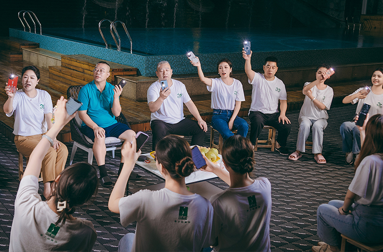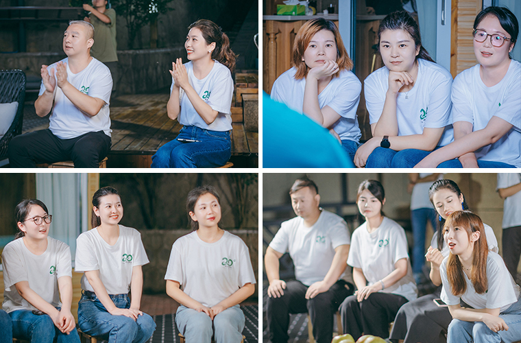 群山環(huán)抱的綠韻山莊,伴著潺潺水流聲,團團圍坐在一起的綠之韻人在星空下齊聲唱響20周年主題曲《愿世間所有美好如約而至》,在美妙的旋律中開啟了一場圍桌夜話。家人們認真傾聽胡國安董事長講述他的創(chuàng)業(yè)故事和人生感悟,學習他創(chuàng)新求變、勇于開拓的奮斗精神。大家暢所欲言,現(xiàn)場氛圍其樂融融。面對家人們的真誠發(fā)問,胡國安董事長笑語盈盈地與大家探討了當初將水的精神和文化融入企業(yè)發(fā)展的初衷、創(chuàng)立企業(yè)遇到的困難和陪伴至今的合作伙伴、傳承綠之韻家文化的意義等話題,也提出了他對綠之韻伙伴們的三個期待,一是希望大家家庭和睦幸福美滿,家庭能夠給予人足夠的內生動力和發(fā)展源泉,有小家才能成大家;再是期望每一位綠之韻人都能如水之勇敢、堅韌,一往無前,亦如歌詞里所說,你唯一要做的是做更好的自己;最后希望大家在工作和學習中同心協(xié)力開拓創(chuàng)新,創(chuàng)造更加美好的綠之韻,愿所有美好如約而至。