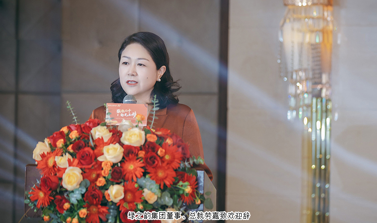 歲月不居,時節(jié)如流,廿念同心,共耀美好。10月17日下午6點半,癸卯年綠之韻集團千人祭祀舜帝典禮歡迎晚宴正式啟幕。傍晚時分,綠之韻集團董事長胡國安、董事總裁勞嘉、常務副總裁胡均安攜公司高管團隊、合作伙伴及精英代表們陸續(xù)抵達晚宴現(xiàn)場,大家紛紛在互動區(qū)合影,留下攜手共進的笑顏與向新前行的信念。晚宴伊始,綠之韻集團董事、總裁勞嘉致歡迎辭。她首先代表集團公司對各位領導、嘉賓和綠之韻家人們的到來表示熱烈的歡迎和誠摯的問候。在致辭中,她向大家介紹了20周年公司舉辦的系列活動,今年5月,3000名事業(yè)伙伴集結人文地標橘子洲,共同為愛奔跑;緊接著,開展了20周年歷程展、尋根溯源取水儀式、出品了20周年《綠之韻賦》和主題曲,推出了20周年紀念版產(chǎn)品禮盒……這每一場品牌文化活動,每一個創(chuàng)新突破的背后,都傳遞著“回歸初心、厚植文化、堅守匠心”理念和情懷。她衷心感謝每一位事業(yè)伙伴和家人,感謝大家的選擇、相信、努力和堅持,讓綠之韻這個名字,熠熠生輝。青春氣貫長虹,20歲的綠之韻如日東升、風華正茂。她希望,每一個綠之韻人都能以全新的姿態(tài)去迎接未來屬于我們共同的30年、40年、50年……“共建百年企業(yè),共筑世界名牌”。