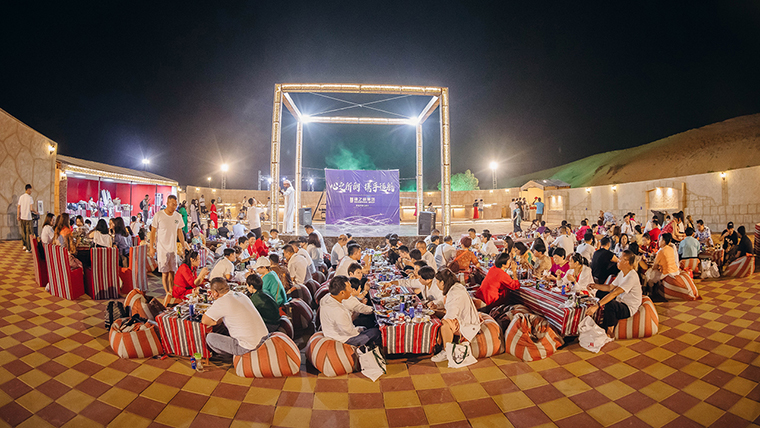 夜幕悄然降臨,在具有阿拉伯獨特風(fēng)情的沙漠營地,開啟了綠之韻人專屬的特色風(fēng)情晚宴,欣賞獨特的阿拉伯音樂和肚皮舞表演,穿著阿拉伯民族服飾拍照,品嘗阿拉伯特色的食物,繪制阿拉伯民族手繪,收獲生日驚喜……仰望漫天星空,享受全身心的放松與自我。